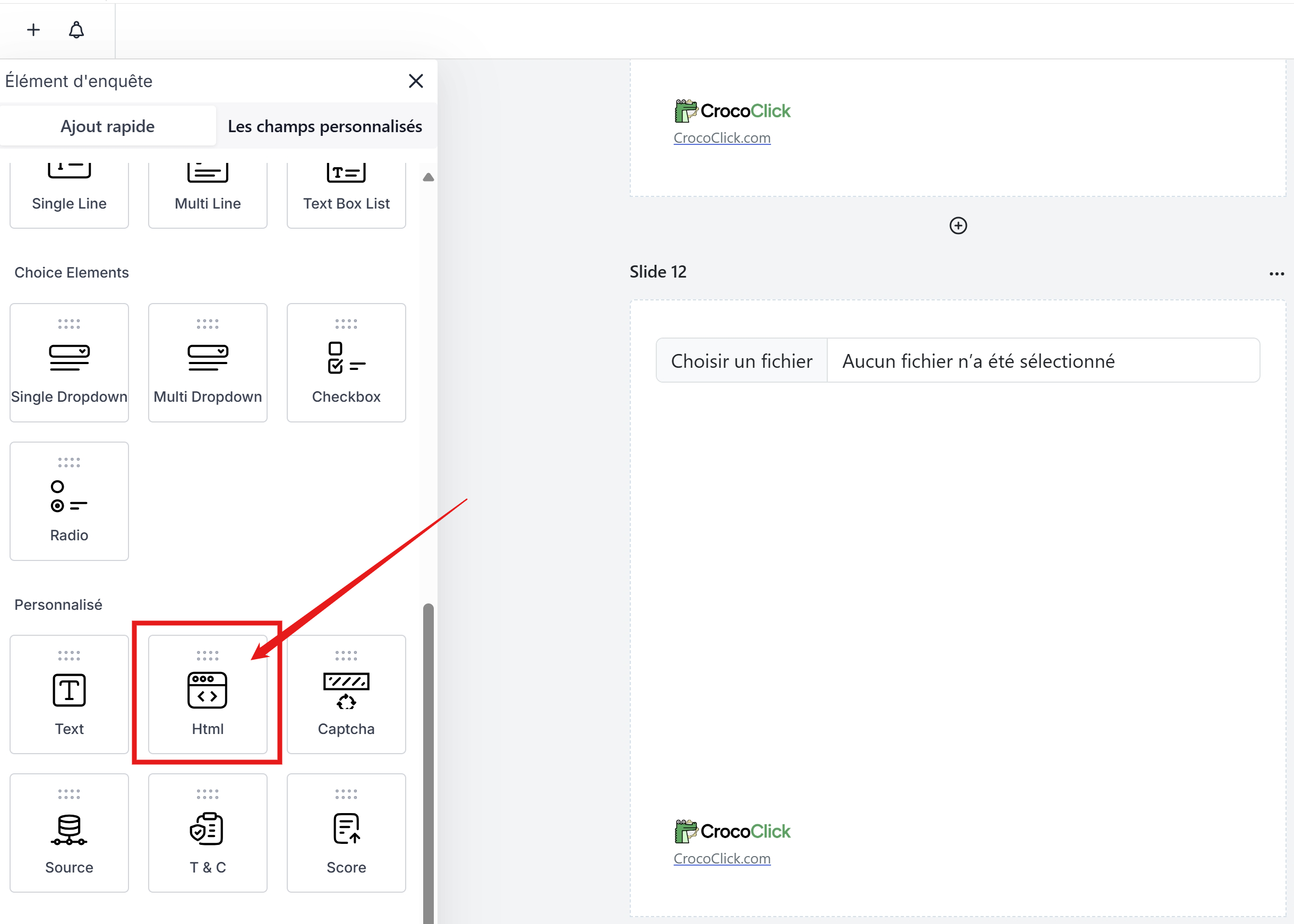 Étape 2 : Ajouter le bloc HTML dans votre sondage, formulaire ou quiz