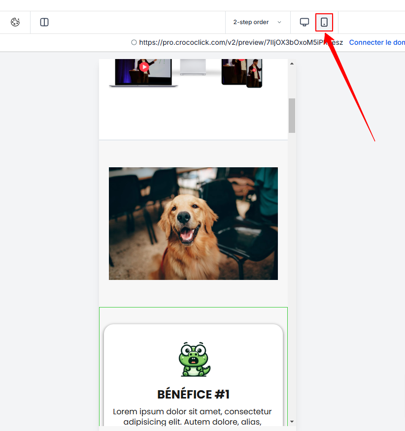 Utilisez l'outil Preview (Aperçu) dans CrocoClick pour voir le rendu sur différents appareils (ordinateur, tablette, smartphone).