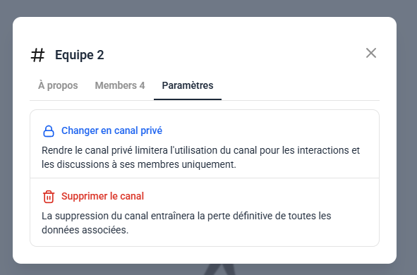 Les canaux privés offrent une gestion ciblée et confidentielle de vos échanges, renforçant l’exclusivité et le contrôle sur les discussions au sein de vos groupes.