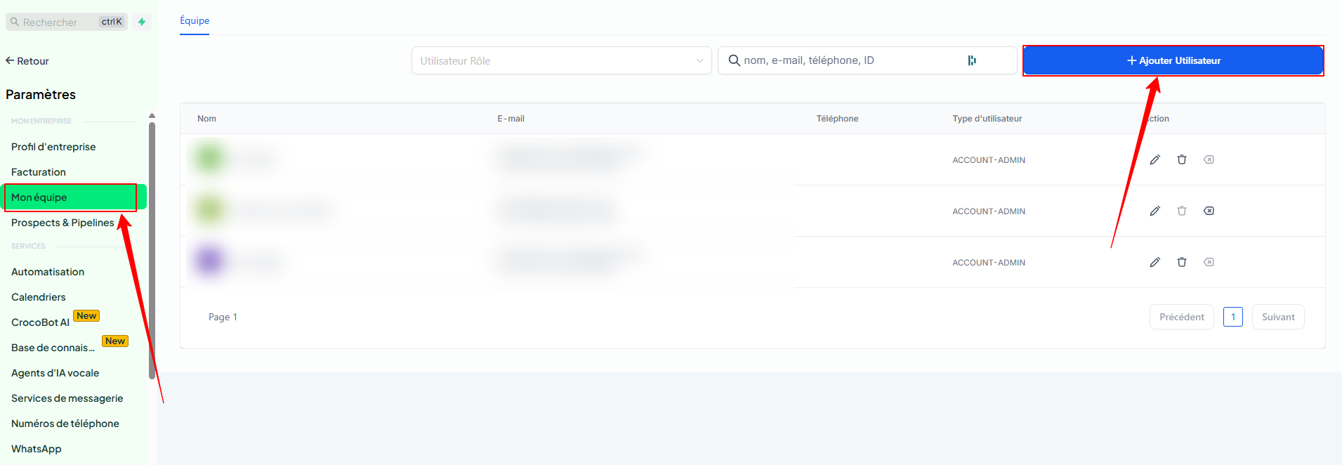 2. Cliquez sur Ajouter un utilisateur