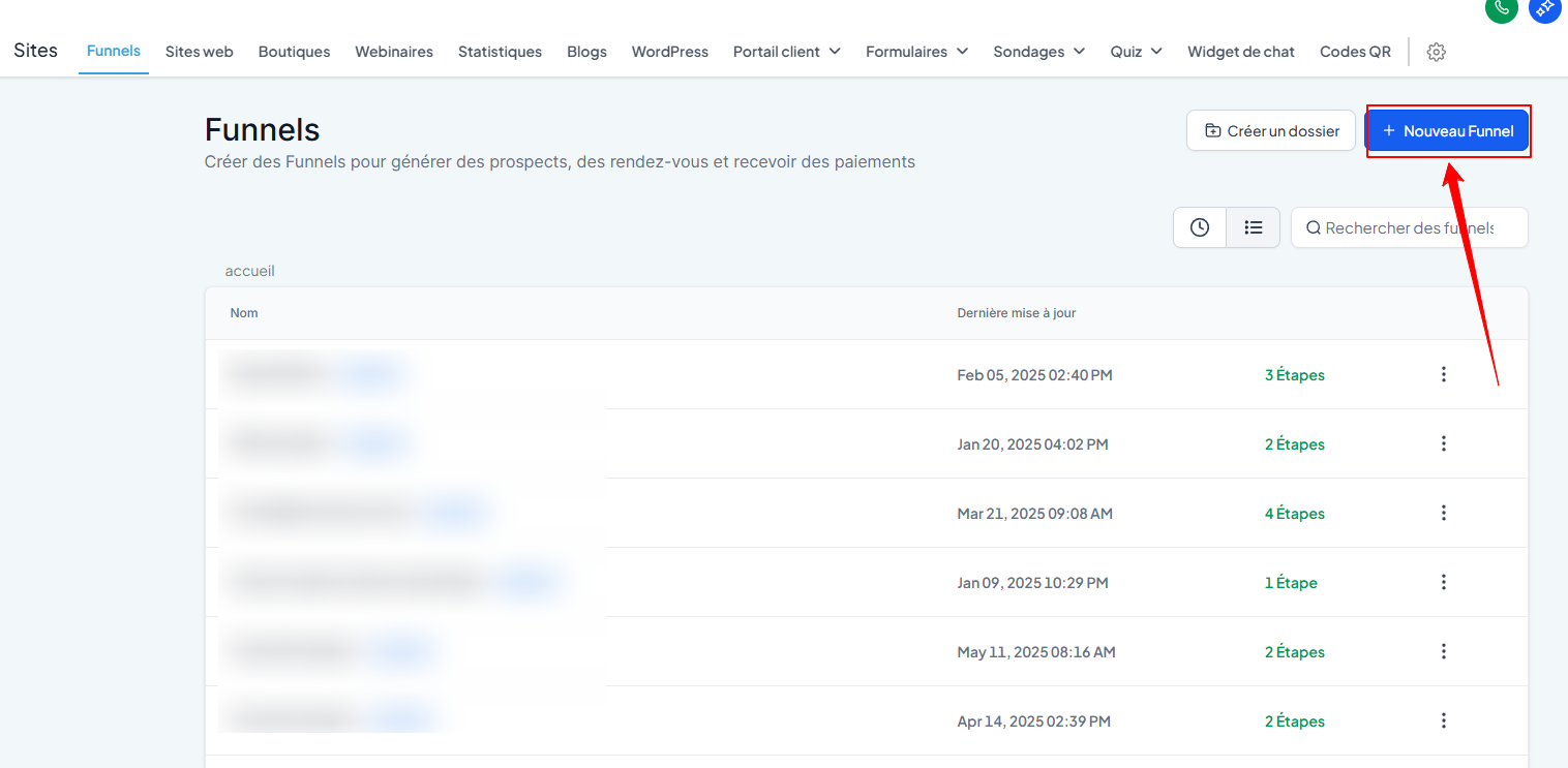 Cliquez sur un funnel déjà créé
