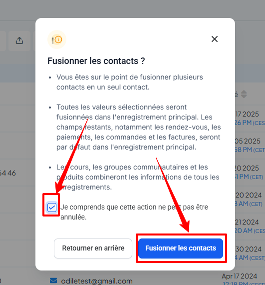 Cliquez sur Fusionner les contacts