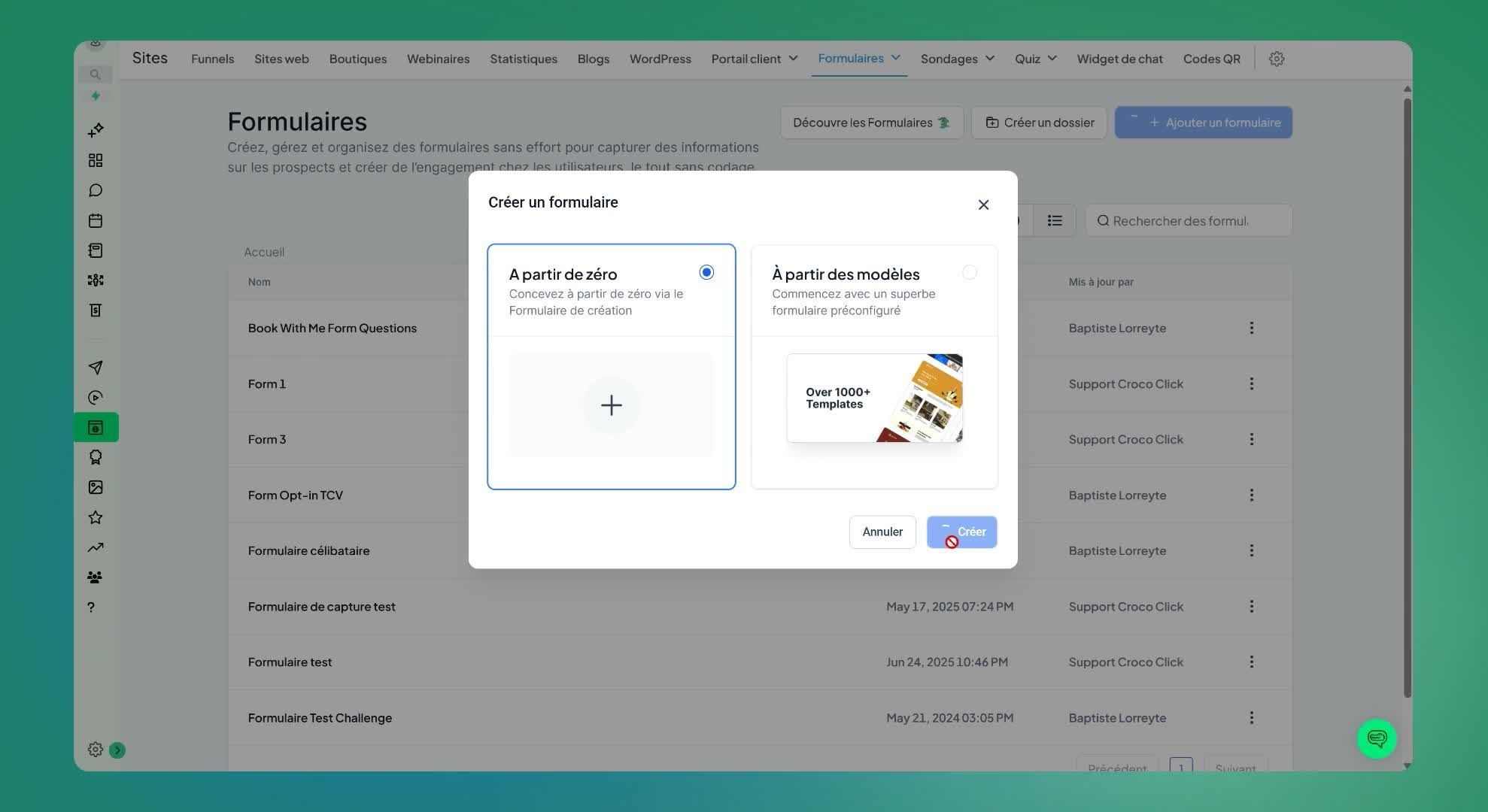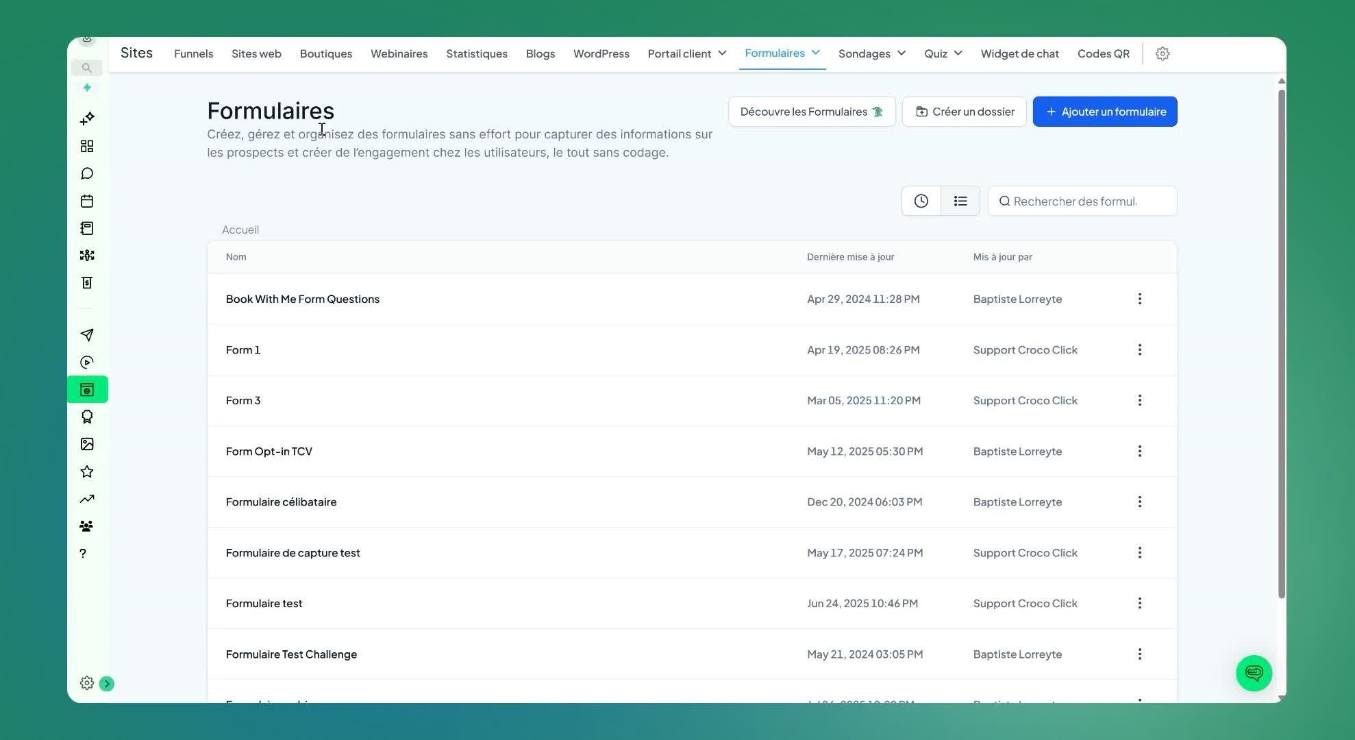 Cliquer sur 'ajouter un formulaire'.