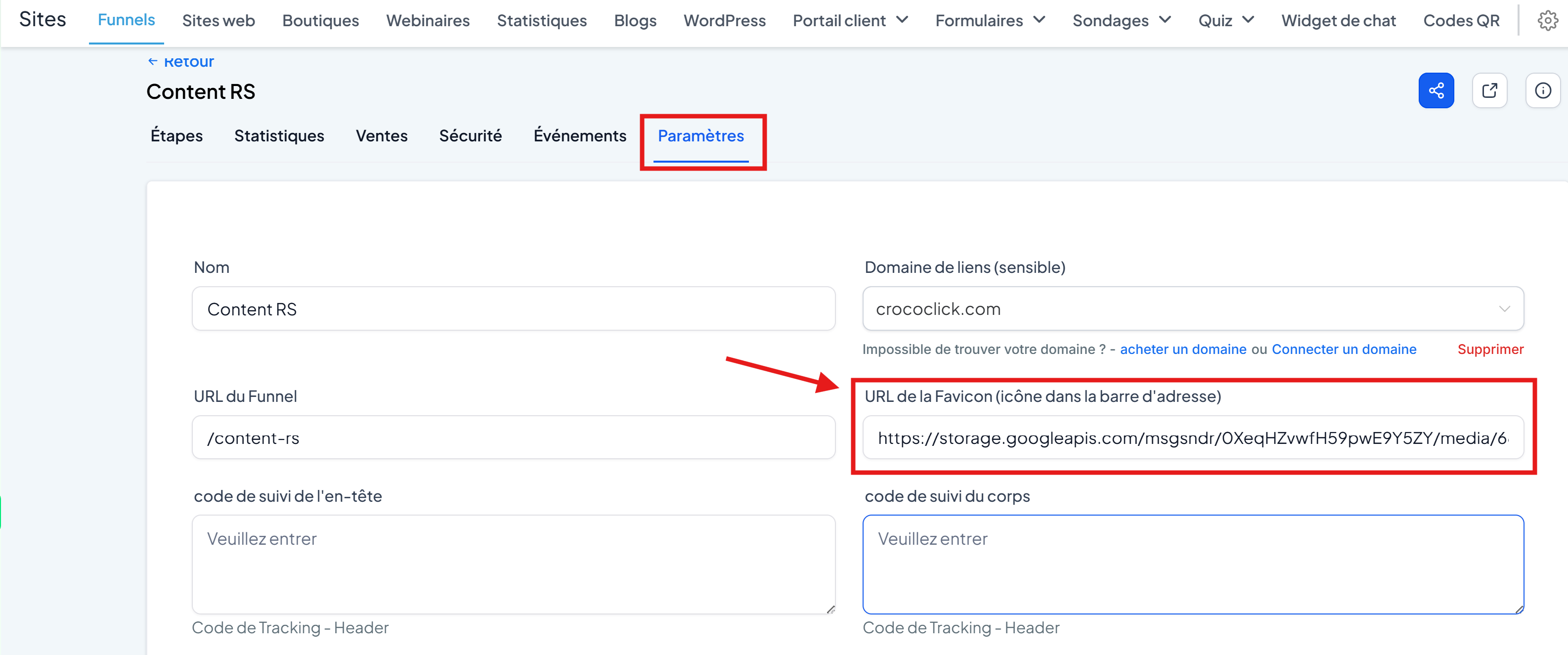 Comment ajouter une Favicon à votre site ou funnel dans CrocoClick