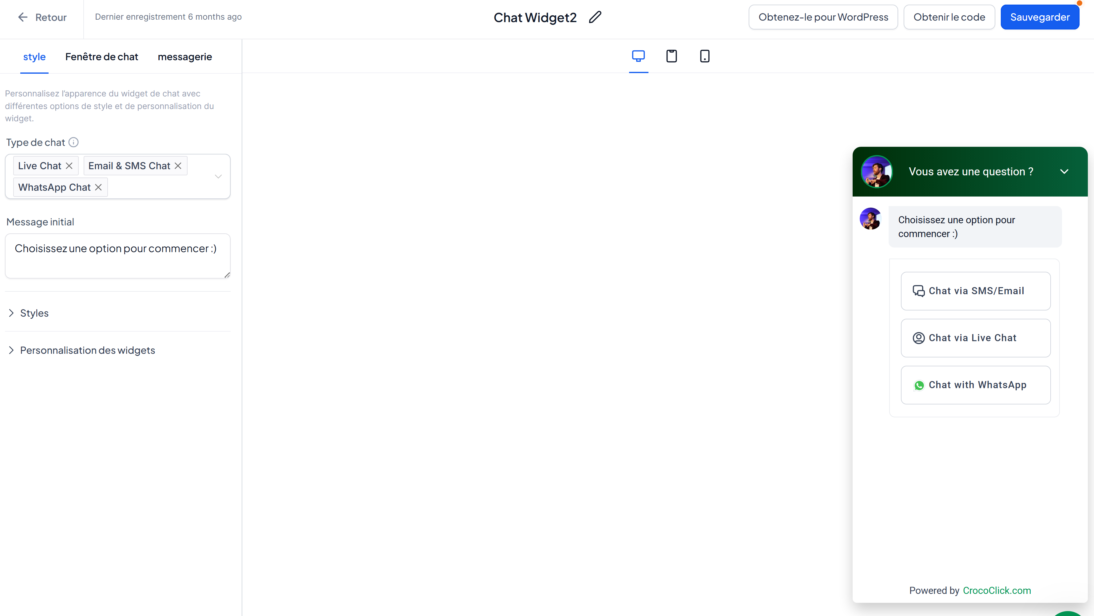 Le Chat Widget CrocoClick est une bulle de discussion intégrable sur vos sites ou funnels.