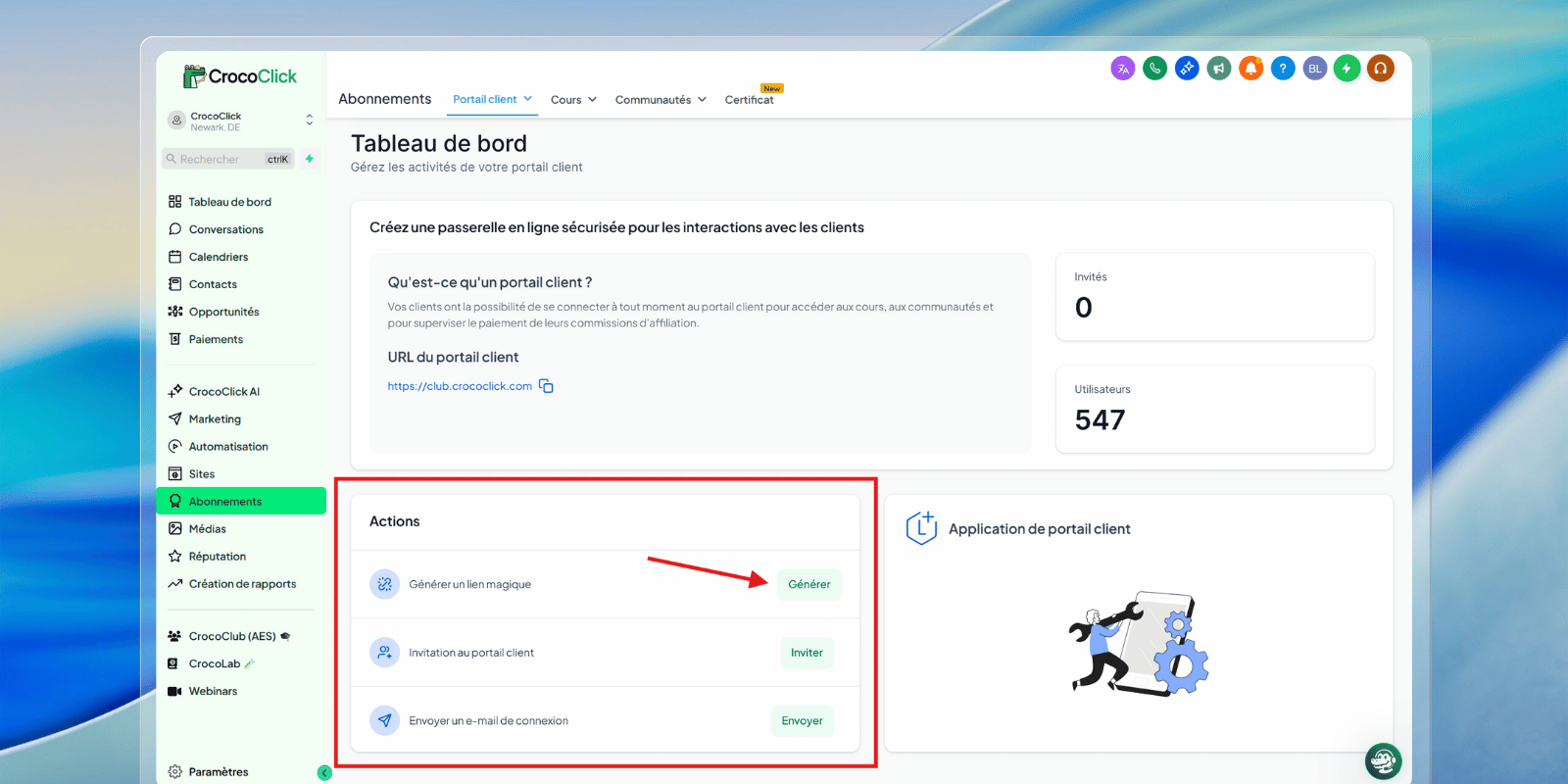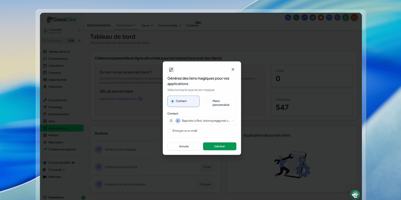 Découvrez comment créer, envoyer et utiliser les liens magiques CrocoClick pour donner un accès sécurisé aux formations et au portail client sans identifiant ni mot de passe, via emails, workflows ou menus personnalisés.